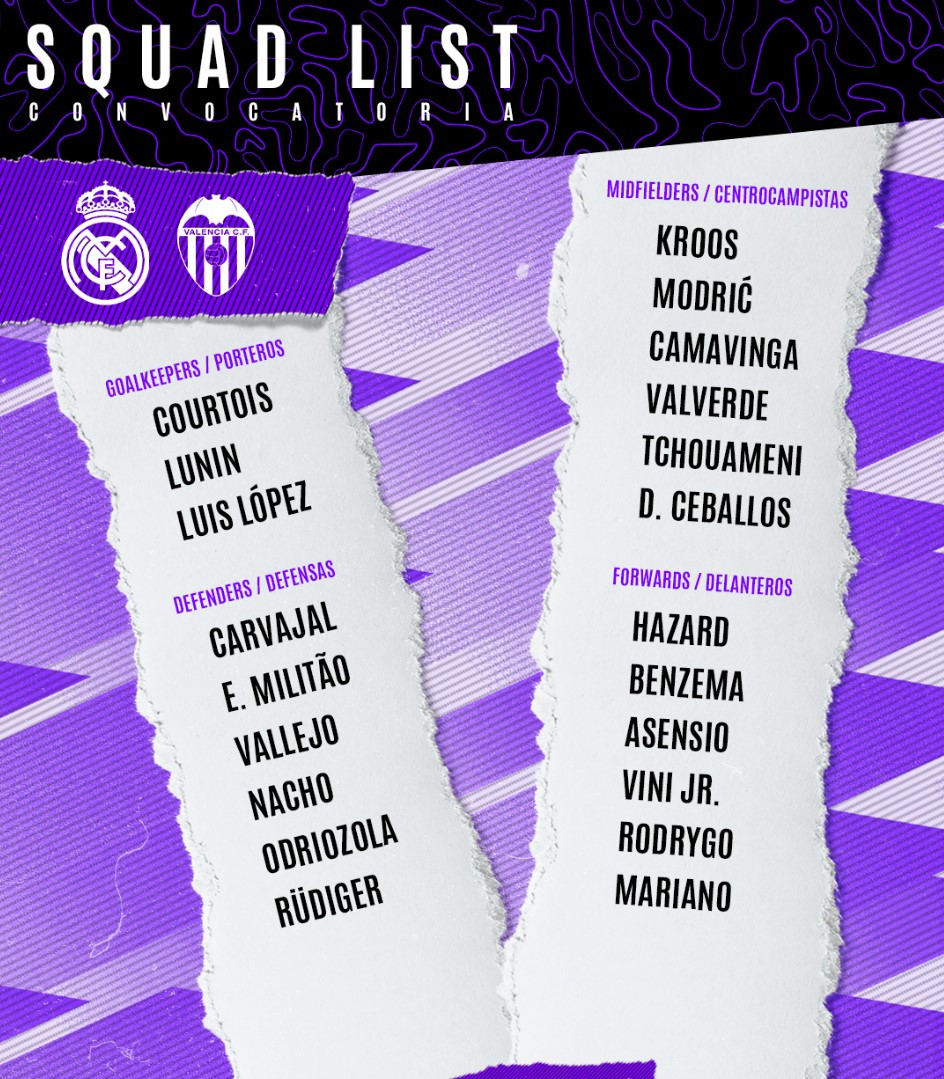 "რეალის" განაცხადი "ვალენსიასთან" მატჩისთვის ცნობილია
