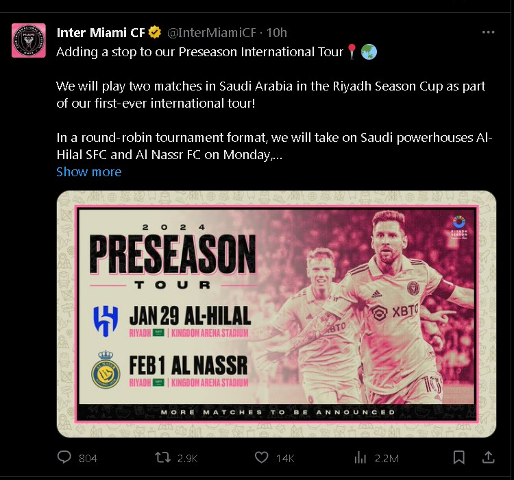როგორც "ინტერ მაიამიმ" დაადასტურა, ამერიკული კლუბი პრე-სეზონზე საუდის არაბეთის ორ გუნდს შეხვდება.