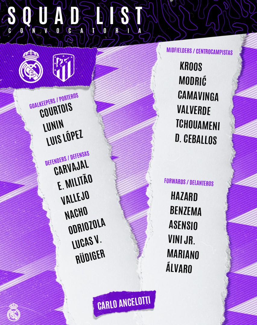 "რეალის" განაცხადი "ატლეტიკოსთან" მატჩისთვის ცნობილია