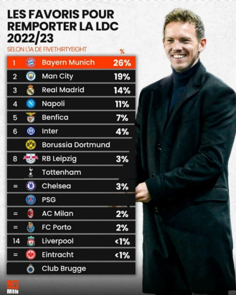 FiveThirtyEight-ის სუპერკომპიუტერმა 2022/23 წლების ჩემპიონთა ლიგაზე ახალი პროგნოზი გააკეთა.