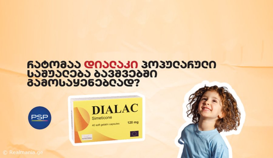 მისი აქტიური შემადგენელი ნივთიერება სიმეტიკონია. წვეთები შინაგანი მიღებისთვის არის განკუთვნილი და ბანანის გემო აქვს — ამიტომაც უყვართ იგი განსაკუთრებით ბავშვებს. დიალაკი გამოიყენება შებერილობის სიმპტომების მოსახსნელად და განკუთვნილია ყველა ასაკობრივი ჯგუფისთვის. მოდით, უკეთ გავერკვეთ მის თვისებებში: